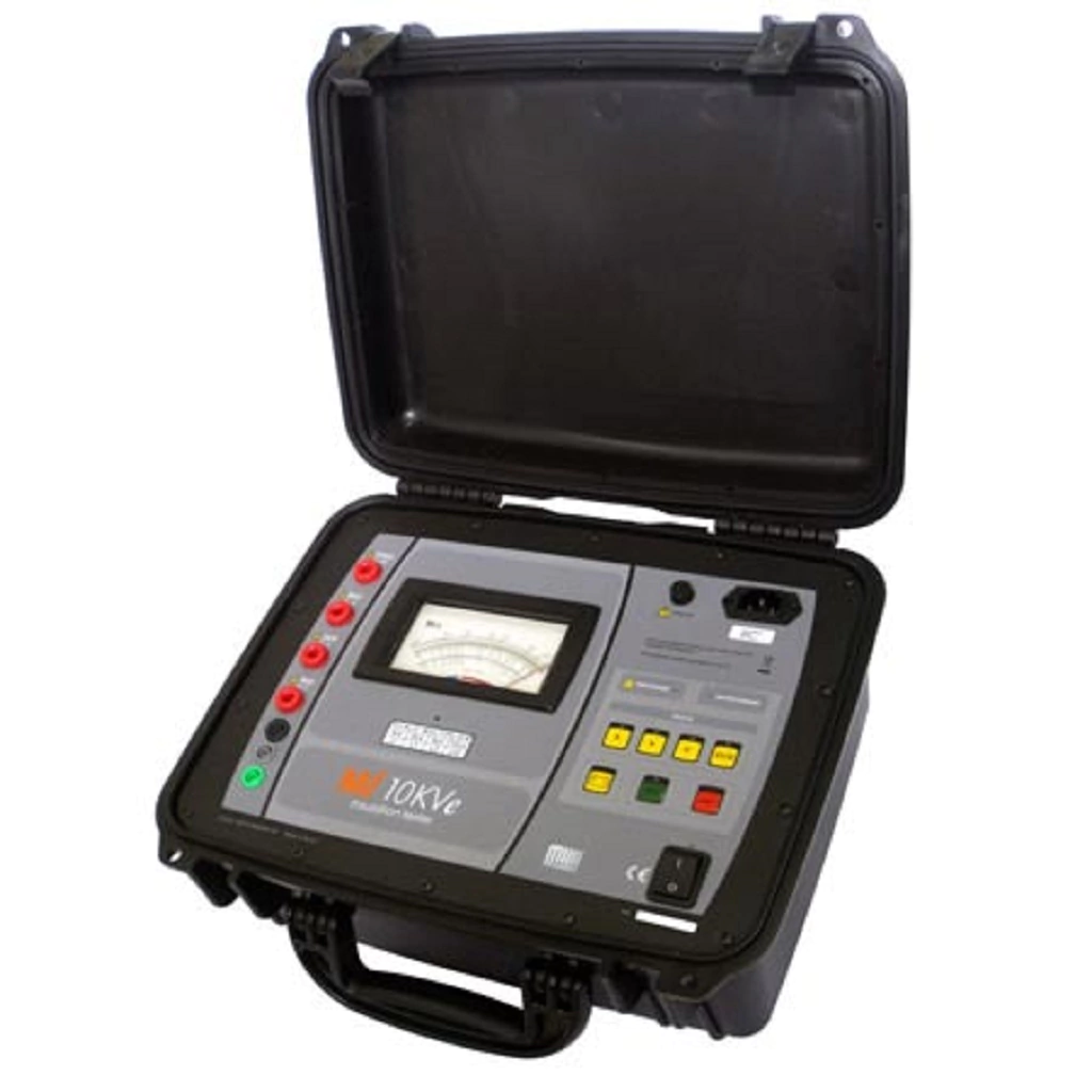 O megôhmetro de alta tensão MI-10KVe é um instrumento verdadeiramente portátil que permite realizar medições de resistências de isolação com tensões de prova de até 10 kV.